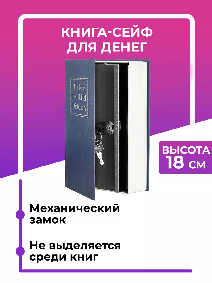 Механический сейф-книга — абсолютно точная имитация обычной книги, которая легко затеряется на полке, в вашей библиотеке! Благодаря искусно выполненному дизайну в стиле английского словаря, сейф станет не только отличным местом для хранения денег, ценностей или дорогих сердцу предметов, но и значительно украсит интерьер.